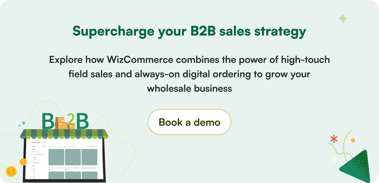 WizCommerce helps you do this—seamlessly connect field sales with digital ordering, equip reps with modern tools, and scale your B2B business with ease. It’s built for wholesale, trusted by growing brands, and ready to transform how you sell.