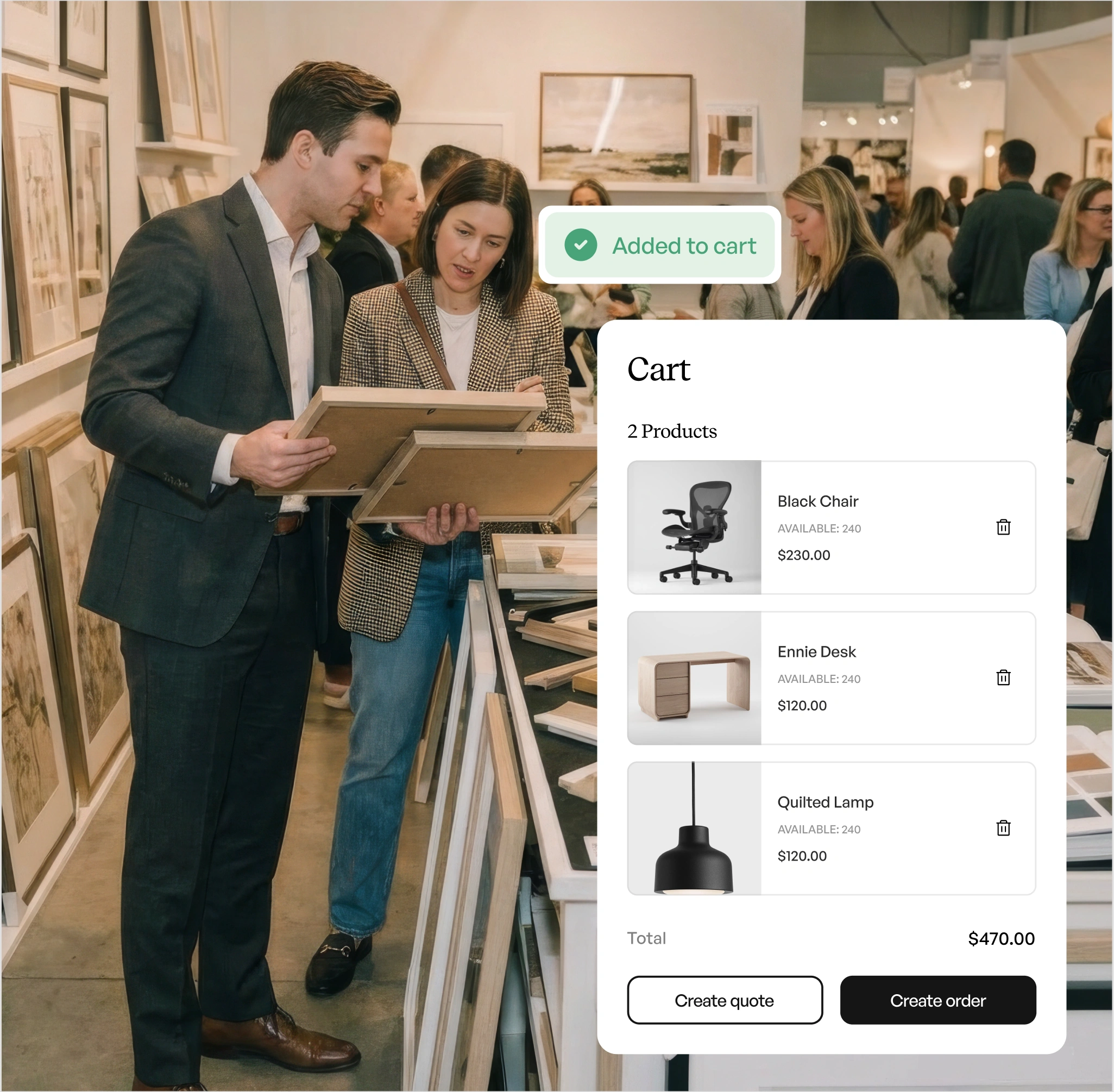 Give reps the tools to write orders instantly, help designers & buyers find the perfect products with AI search, and keep your online catalog fresh with fast, studio-quality AI imagery.